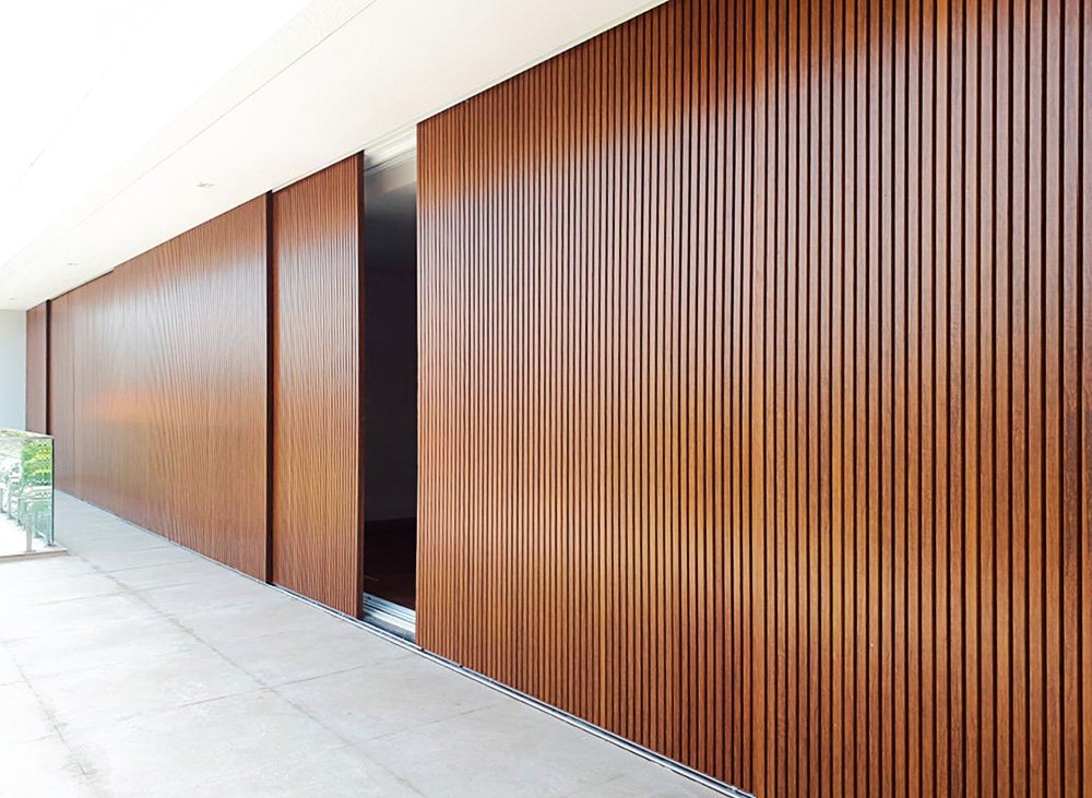O brise de alumínio amadeirado é uma variação dos brises metálicos usados, em sua maioria, para fachadas, passarelas, pergolados, divisórias e janelas externas. Fabricado com uma pintura opaca e acabamento em alto relevo, ele busca simular ripas de madeira em suas matrizes e tons.