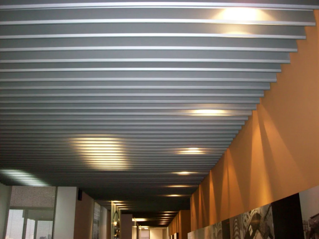 Os forros metálicos adicionam um toque contemporâneo e elegante aos espaços, conferindo um visual limpo e sofisticado que pode ser personalizado com diferentes acabamentos e cores.