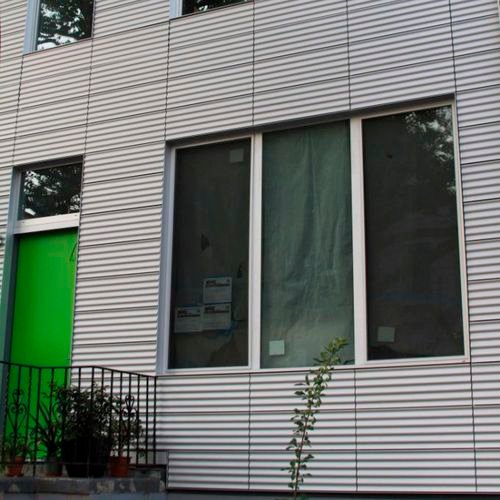 - Design: Uso de painéis de alumínio ondulado, criando um efeito tridimensional e texturizado na fachada.