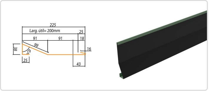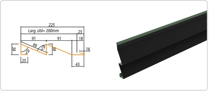 | Ripado | 0,65 ou 0,80 mm | Galvalume | 200mm | 0% | Pintura |