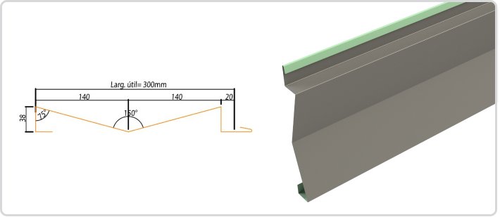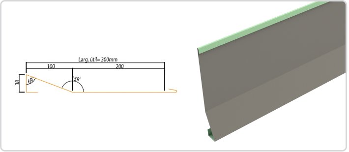 | Ripado | 0,65 ou 0,80 mm | Galvalume | 300mm | ||